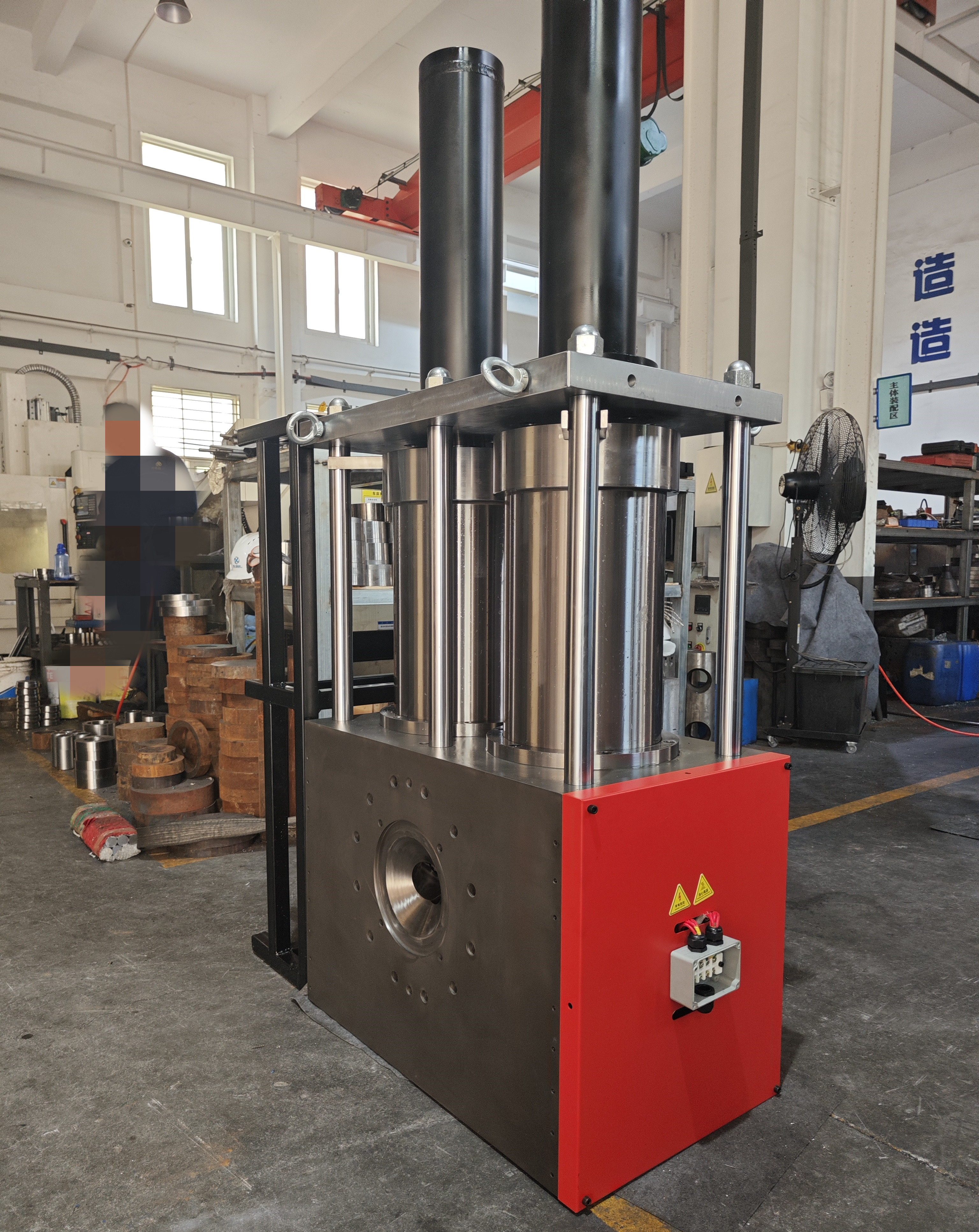 2、換網器主體+蓄能液壓泵站+加熱裝置+電器控制柜(定制配置)。
