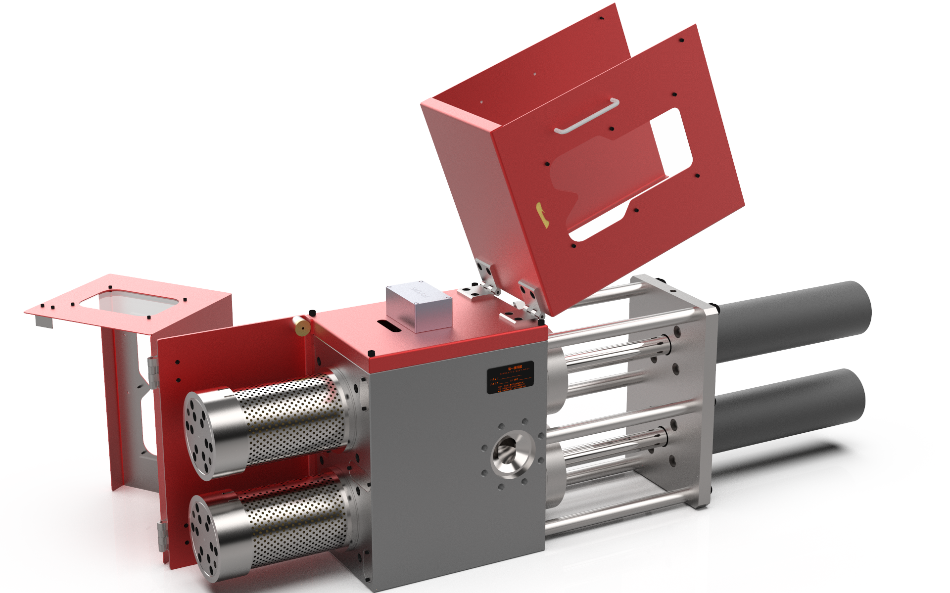 2、換網器主體+蓄能液壓泵站+加熱裝置+電器控制柜(定制配置)。